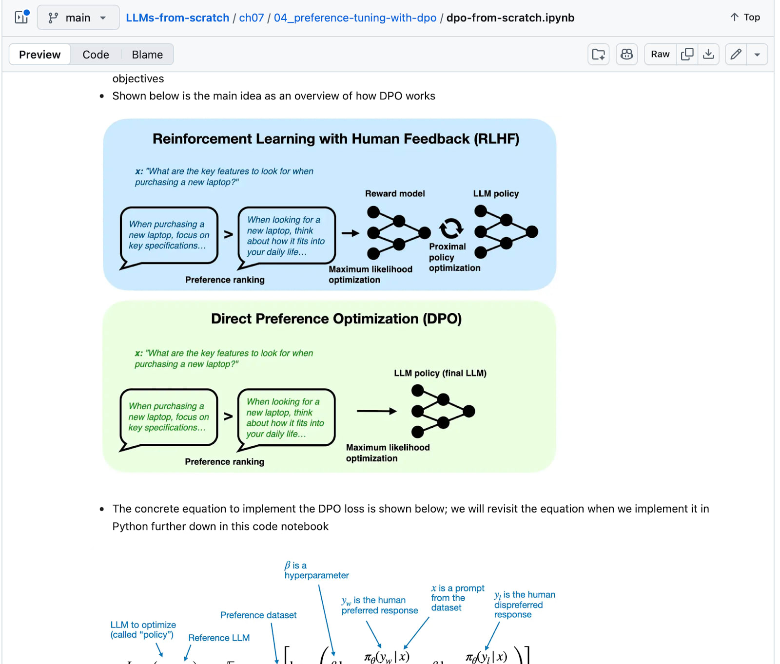 Another one is DPO (Direct Preference Optimization: Your Language Model is Secretly a Reward Model) and related methods for reward-model-free alignment as an alternative reinforcement learning with human feedback.