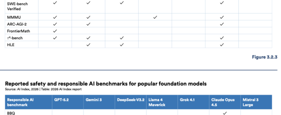 Almost every frontier model developer reports results on ability benchmarks. The same is not true for responsible AI benchmarks, and the 2026 Index documents the gap with some precision.