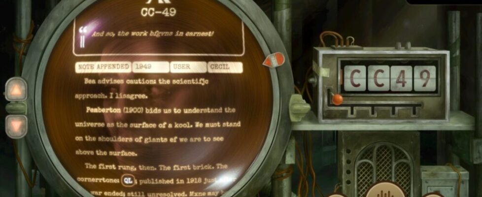 The entirety of TR-49 takes place from a first-person perspective as you sit in front of a kind of Steampunk-infused computer terminal. An unseen narrator asks you to operate the machine but is initially cagey about how or why or what you’re even looking for. There’s a creepy vibe to the under-explained circumstances that brought you to this situation, but the game never descends into the jump scares or horror tropes of so many other modern titles.