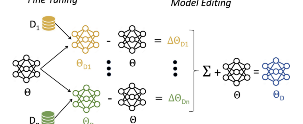 - Individual-distribution training: The original model is trained on individual data distributions through standard training procedures. Checkpoints, or snapshots of the model state after training on a particular dataset, are stored for subsequent steps.