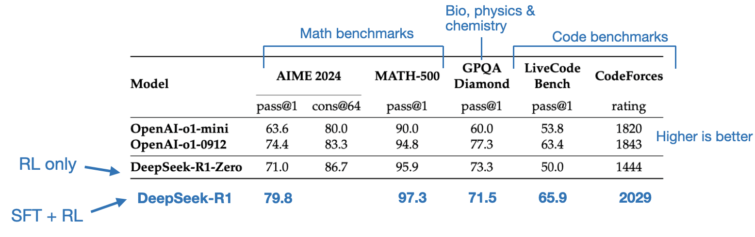 3. As mentioned above, RL + SFT is the key approach for building high-performance reasoning models. DeepSeek-R1 is a nice blueprint showing how this can be done.