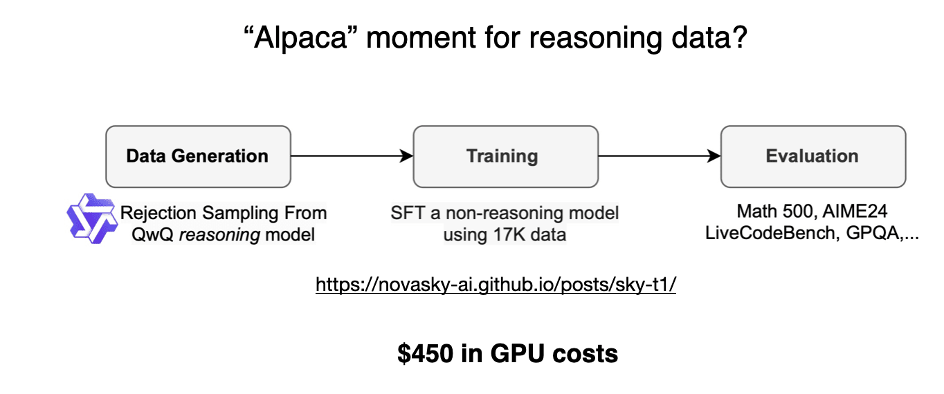 Interestingly, just a few days before DeepSeek-R1 was released, I came across an article about Sky-T1, a fascinating project where a small team trained an open-weight 32B model using only 17K SFT samples. The total cost? Just $450, which is less than the registration fee for most AI conferences.