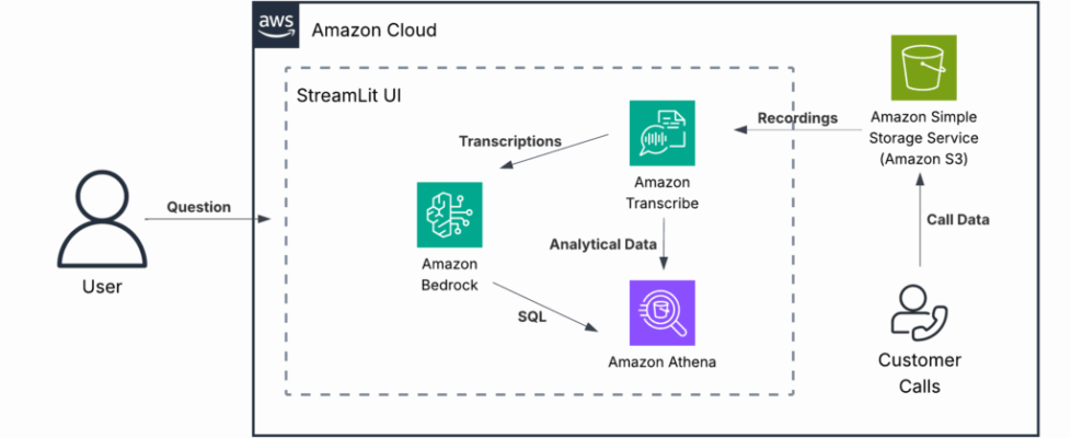 - Amazon Athena – Used for querying the call data stored in a structured format, allowing for efficient data retrieval and analysis