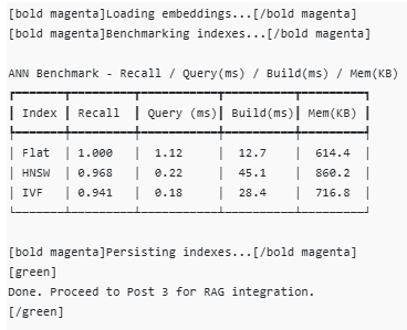print("[green]nDone. Proceed to Post 3 for RAG integration.n[/green]")