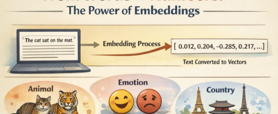 This article is part of a series on Generative AI. The previous articles covered the overview of the Encoder architecture and how transformers process and represent input. But before any of that can happen, raw text has to become something a model can actually work with. That’s where embeddings come in. They are the foundation layer, the step that converts language into numbers before attention, generation, or reasoning can begin.