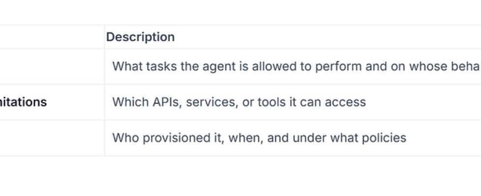 Traditional identity is simple: an identifier that maps to a person. For agents, identity must carry context-rich metadata, including: