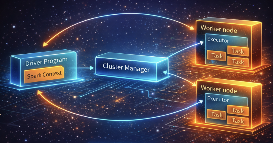 Driver — The heart of PySpark. It creates the Spark session, defines transformations, and coordinates task execution on the cluster.