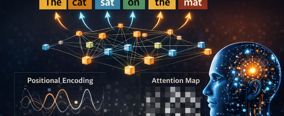 Author(s): Rohini Joshi Originally published on Towards AI. Image Generated by ChatGPT The sentence “dog bites man” and “man bites dog” contain the exact same words. A Transformer without positional encoding would treat them as identical. Here’s how modern LLMs learn word order and then decide which words actually matter. The previous article here, explained how embeddings convert words into numbers, vectors in a high-dimensional space where distance reflects meaning. But embeddings alone have a problem. They represent individual words in isolation. They do not capture where a word appears in a sentence, or how it relates to other words around it. Two mechanisms fix this. Positional encoding tells the model where each word sits. Attention tells the model which words matter for understanding each other word. Together, they are what make Transformers work. Part 1: Positional Encoding: Teaching Word Order to a Model The Problem: Without Order, Words Are Just a Bag Recurrent neural networks (RNNs and LSTMs) process words one at a time, left to right. Word order is built into the architecture, the model sees “the” before “cat” before “sat” because it literally processes them in sequence. Transformers do not work this way. They process all words simultaneously, in parallel. This makes them much faster to train, but it creates a fundamental problem: without intervention, a Transformer has no idea that “the” comes before “cat” which comes before “sat.” Every word is just a floating vector with no address. Consider these two sentences: The cat sat on the mat The mat sat on the cat The word embeddings are identical in both cases. The same words appear the same number of times. Without positional information, these two sentences are mathematically indistinguishable to the model. That is obviously unacceptable, one describes a normal cat and the other describes a very unusual mat. The Solution: Add Position to the Embedding The fix is elegant. Before feeding embeddings into the Transformer, a positional encoding vector is added to each word’s embedding. This vector encodes the word’s position in the sequence. After the addition, the embedding for “cat” in position 2 is numerically different from “cat” in position 5, even though the word is the same. final_embedding = word_embedding + positional_encoding That’s it. One addition. But the details of how the positional encoding is constructed makes all the difference. Sinusoidal Positional Encoding The original “Attention Is All You Need” paper used a mathematical approach based on sine and cosine waves at different frequencies. For each position and each dimension, each of the 300 numbers in the embedding vector from the previous article, the encoding is computed as: Where pos is the word’s position, i is the dimension index, and d is the total embedding dimension. This looks abstract, but the intuition is simple: each dimension oscillates at a different frequency. Low dimensions change slowly (capturing broad position information), while high dimensions change rapidly (capturing fine-grained position). Together, they create a unique fingerprint for every position. import numpy as npimport matplotlib.pyplot as plt def sinusoidal_positional_encoding(max_len, d_model): “””Generate positional encodings as described in ‘Attention Is All You Need'””” pe = np.zeros((max_len, d_model)) position = np.arange(max_len)[:, np.newaxis] # shape: (max_len, 1) # Compute the division term: 10000^(2i/d_model) div_term = 10000 ** (np.arange(0, d_model, 2) / d_model) # Apply sin to even indices, cos to odd indices pe[:, 0::2] = np.sin(position / div_term) pe[:, 1::2] = np.cos(position / div_term) return pe # Generate encodings for 50 positions in a 64-dimensional spacepe = sinusoidal_positional_encoding(max_len=50, d_model=64) plt.figure(figsize=(14, 6))plt.imshow(pe, cmap=”RdBu”, aspect=”auto”)plt.xlabel(“Embedding Dimension”)plt.ylabel(“Word Position in Sentence”)plt.title(“Sinusoidal Positional Encoding — Each Position Gets a Unique Pattern”)plt.colorbar(label=”Value”)plt.tight_layout()plt.savefig(“positional_encoding_heatmap.png”, dpi=150, bbox_inches=”tight”)plt.show() Sinusoidal positional encoding for 50 positions across 64 dimensions. Slow waves on the left, fast oscillations on the right, together, they give every position a unique pattern. Each row is one word position. The left side (low dimensions) shows wide, slow-changing waves, capturing broad position. The right side (high dimensions) shows tight, rapid stripes, capturing exact position. Every row has a unique pattern, which is exactly what the model needs to distinguish positions. Why Sine and Cosine? Three properties make this design effective: Unique positions. No two positions get the same encoding. The model can always tell position 3 from position 17. Relative distance is learnable. The relationship between position 5 and position 8 is consistent regardless of where in the sentence they occur. This is because sinusoidal functions have a mathematical property: PE(pos + k) can be expressed as a linear function of PE(pos). The model can learn to detect “3 positions apart” as a pattern. Generalizes to unseen lengths. Since the encoding is computed from a formula (not looked up from a table), it works for sequences longer than anything seen during training. # Demonstrating that relative distances are capturedpos_5 = pe[5]pos_8 = pe[8]pos_15 = pe[15]pos_18 = pe[18] # Distance between position 5 and 8dist_5_8 = np.linalg.norm(pos_5 – pos_8)# Distance between position 15 and 18 (same gap, different location)dist_15_18 = np.linalg.norm(pos_15 – pos_18) print(f”Distance between position 5 and 8: {dist_5_8:.4f}”)print(f”Distance between position 15 and 18: {dist_15_18:.4f}”)print(f”Difference: {abs(dist_5_8 – dist_15_18):.4f}”) # Distance between adjacent positions vs. far-apart positionsd